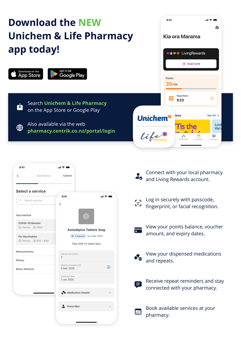 Give us a call on 0800 762 672 or visit your local Unichem or Life Pharmacy. One of our friendly team can connect your email with your Living Rewards Account.