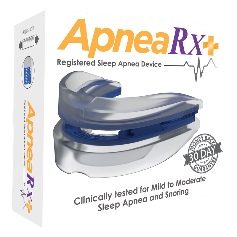 ApneaRx is a clinically proven oral appliance that alleviates sleep apnea and its symptoms. It is the only affordable boil and bite device that can adjust the lower jaw forward in 1mm increments up to 10mm, just like a custom oral appliance. The device does not use moving parts such as screws nor plastic straps to achieve an open airway. Its patented design gently holds the lower jaw in a slightly forward position to open the airway. This technology is called mandibular repositioning and is proven to achieve positive results by allowing more air to flow freely during sleep. Key features are: Advanced design: ApneaRx does not use any screws, springs, rods, rubber bands, or torsion to adjust or maintain jaw advancement. Micro-fit: easy to read 1mm increments advancement delivers maximum clinical efficacy. Posi-lock: jaw advancement mechanism can be set and relocked at any time. Comfort -fit: within minutes, ApneaRx is thermal moulded to the user's mouth for a same day Custom fit. V-Flow: assures full air flow and device alignment for stability and better fit. ApneaRx helps eliminate daytime drowsiness, stops and prevents that tired feeling all the time, and most importantly provides you with a good night’s rest. Try ApneaRx now.