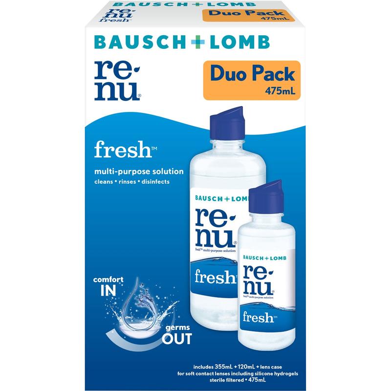 Renu fresh multi-purpose solution rejuvenates your contact lenses, making it feel like you're putting in a fresh pair every day. It is proven to fight germs, clean lenses, and remove irritating protein deposits daily from your soft contact lenses for that fresh lens feeling every day. Daily use of renu fresh multi-purpose solution eliminates the need for a separate enzymatic cleaner or daily cleaner for many lens wearers.