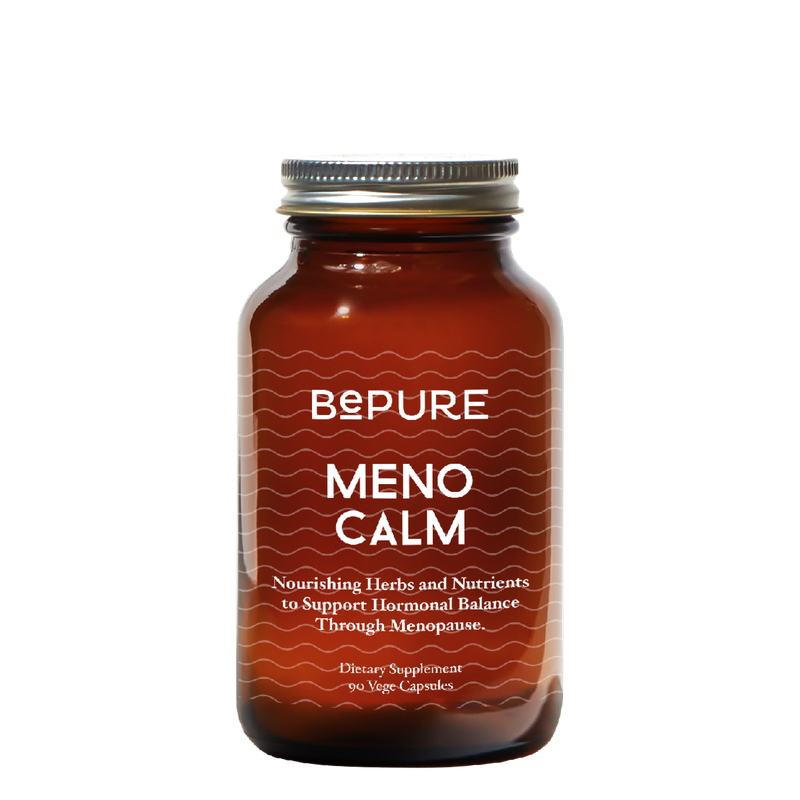 BePure MenoCalm is formulated with nutrients and herbs such as Sage Leaf and Black Cohosh as comforting support for the unwanted experiences commonly associated with menopause, such as temperature imbalance, mood swings, and disrupted sleep. Embrace menopause as a rite of passage with BePure MenoCalm. Support For: Women’s transition through menopause Energy Emotional health and mental focus Mood Sleep Amount per serving: Ashwagandha Root (Withania Somnifera) 500mg Black Cohosh Root 4:1 Extract (Cimicifuga Racemosa) 100mg Sage Leaf 4:1 Extract (Salvia Officinalis) 300mg Choline (from Choline DL-Bitartrate) 200mg Chromium (Picolinate) 150mcg Additional ingredients: Vegetable Capsule: (Hydroxypropylmethylcellulose),Microcrystalline Cellulose, Silicon Dioxide, Magnesium Stearate Take 3 capsules a day with or without food, or as directed by your healthcare practitioner. Do not take with warfarin or other blood pressure medication. If you are undergoing cancer treatment or have recently been diagnosed. Be cautious when taking antibiotics and immunosuppressants. Consult with your healthcare professional if on any medication. If you have a known nightshade allergy please do not take this product as it contains Ashwagandha - a member of the nightshade family. Always read the label and take as directed. Vitamins are supplementary to a balanced diet. BePure Health Ltd, Auckland.