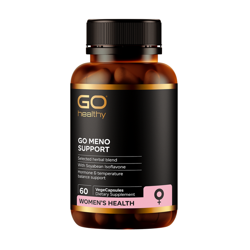 GO MENO SUPPORT contains a blend of herbs combined with Soybean Isoflavone to support hormonal health and temperature balance during changes associated with menopause. This complete combination supports balanced mood, temperature, sleep, wellbeing and vitality. Made in New Zealand from select imported ingredients.