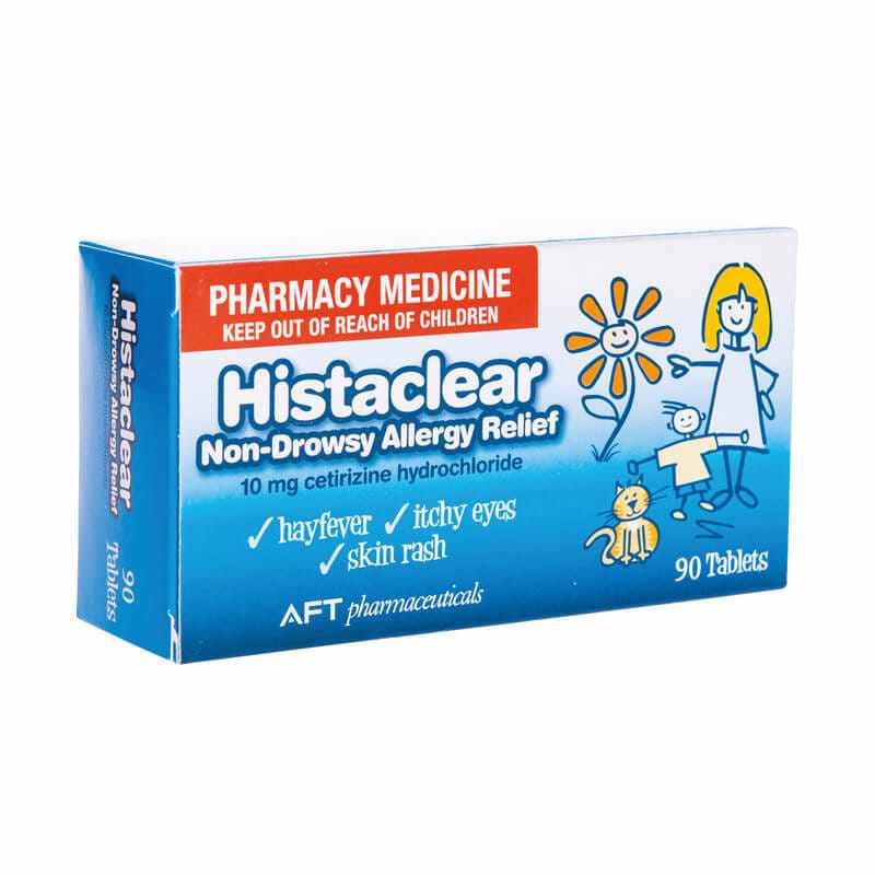 Non-drowsy antihistamine for rapid allergy relief Histaclear is used for the relief of symptoms associated with perennial and seasonal rhinitis (Hayfever), such as sneezing, nasal discharge, and itching, as well as itching and burning of the eyes. Histaclear is also used for the relief of symptoms and signs of chronic urticaria (hives) and other allergic skin disorders.