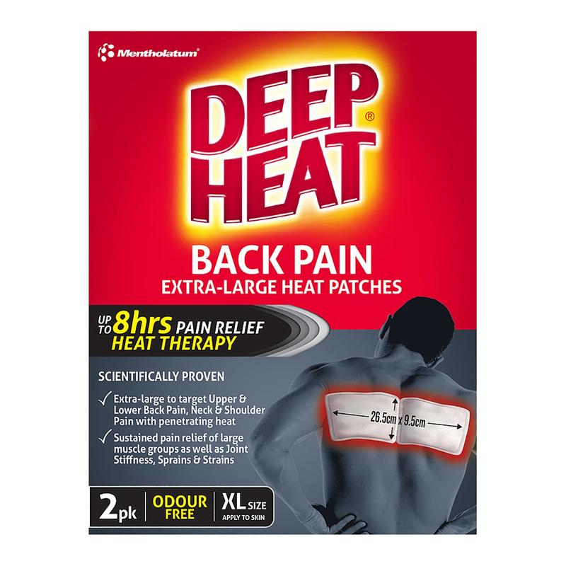 Thin and easy to apply, these adhesive patches provide up to 8 hours of targeted, soothing, temporary pain relief of Back Pain, Muscular Aches or Pain, Joint Stiffness, Strains and Sprains. Extra-large, comfortable to wear, these odourless patches apply directly to the skin and can be worn under clothing to provide all day relief, so you can Get Back in the Game SIZE – 26.5cm x 9.5cm ACTIVATED FROM 60 SECONDS TO RELIEVE - Muscular Aches or Pain - Back Pain (including Lumbago) - Joint Stiffness - Neck and Shoulder Pain Deep Heat Patches work by increasing the blood flow to the affected area providing more oxygen and nutrients to aid the healing process and helps restore movement.